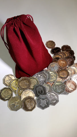 Add some hefty clink to your next game. Here's a great set of coins with a nice drawstring bag to hold them all!
