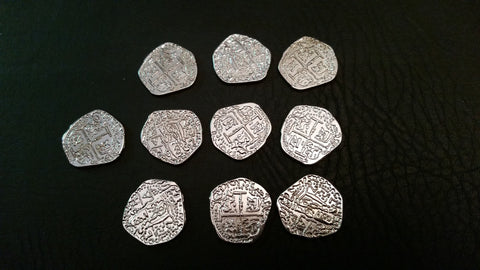 This set comes with 10 shiny silver coins that each measure 23mm (0.9 inches) in diameter.