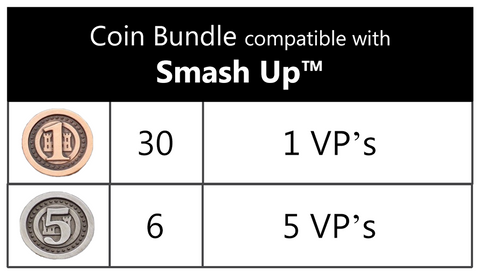 Use these beautifully crafted, and hefty, metal coins as VP token upgrades for your Smash Up™ game.