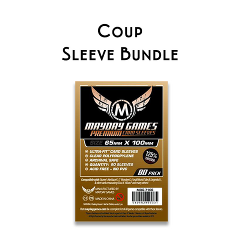 All the sleeves you need for Coup™, including its expansion, in one convenient kit. Protect your game from dirty fingers and spills while adding a nice touch of class to your gaming experience.