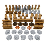 With 114 detailed scenery pieces for the best gaming experience. Made with awesome components to recreate the looks of materials such as stone, wood, metal and many more. The barricade tokens can be combined to make bigger barricades and the mystic totems glow in the dark!