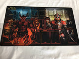 Beautifully black stained wood with custom artwork on the front plastic panel.