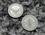 These metal coins are a perfect addition to any game that uses coins. They have good heft and size and are a great value. They can be applied to most any board game without standing out thematically.