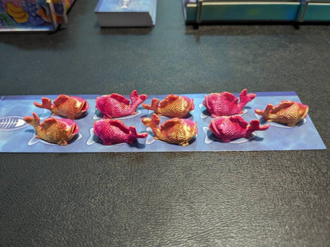 No more mountain of orange cardboard fish tokens for you! Bring your Oceans reef to life with these vibrant 3D printed fish tokens. The tokens are easy to pick up and make it easy to see at a glance about how many fish are left in each zone.