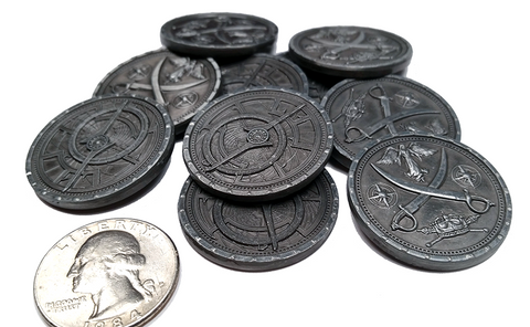 Metal coins - more fun! This booster pack is the ideal supplement to your Pirate Set. Increasing your fantasy funds can add depth to game play and open up the possibilities for new adventures! Pack contains 10 Pirate Silver coins in the usual high quality you expect from Fantasy Coin, LLC.